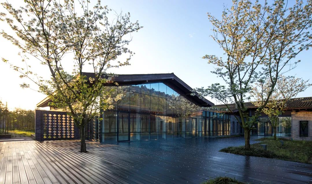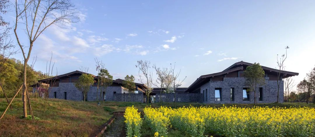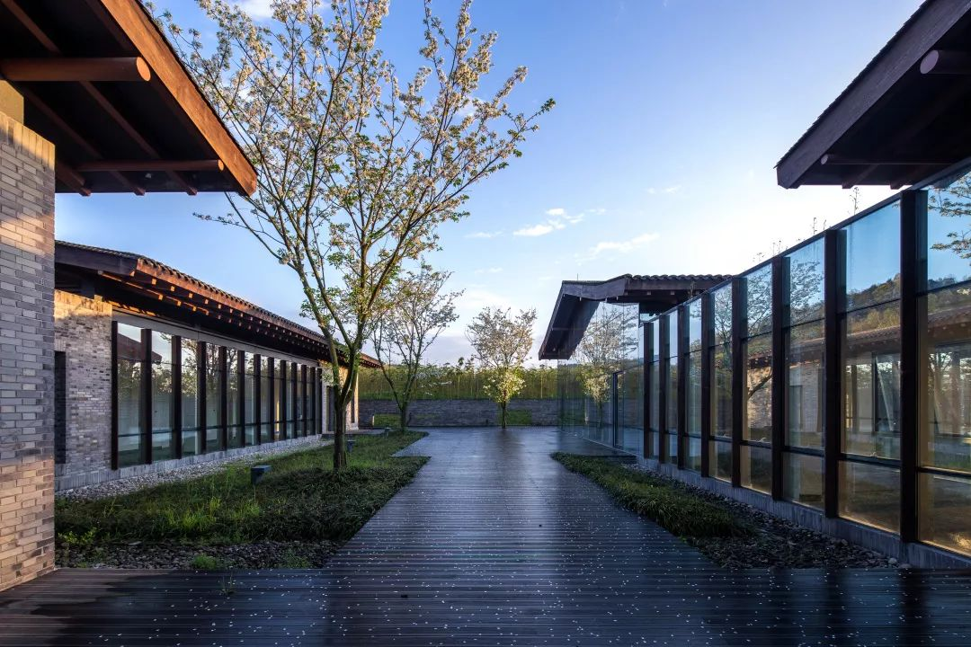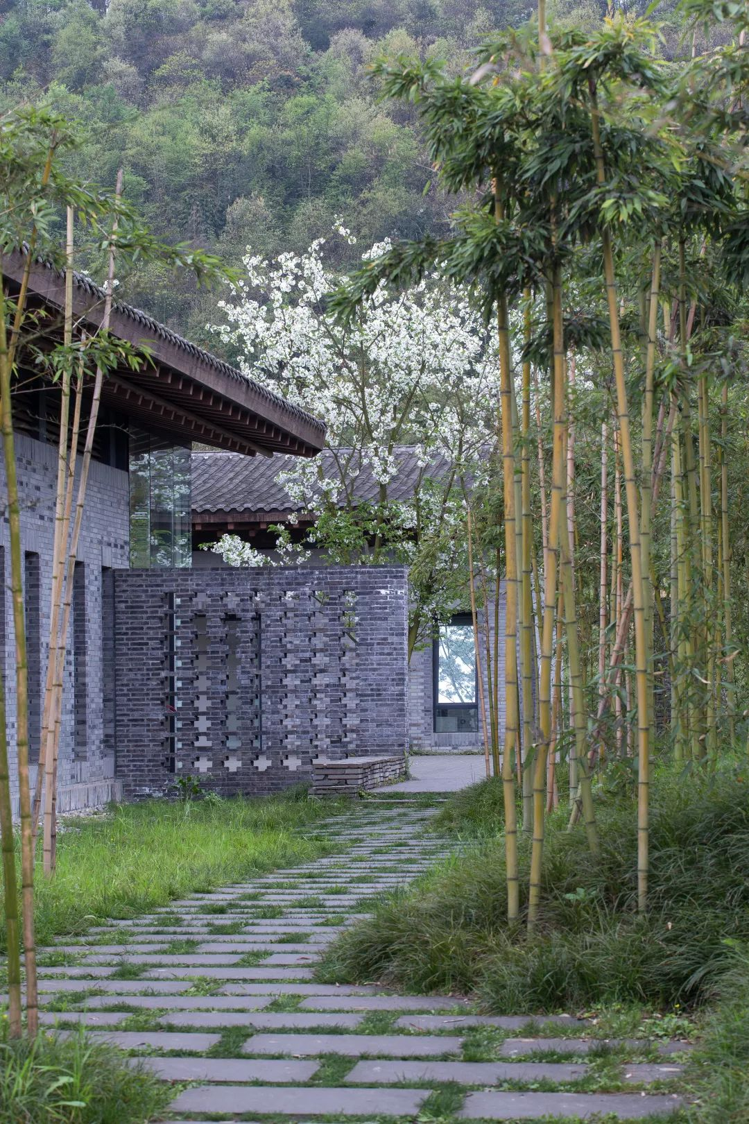 川西传统老屋自古孕育了一套触境生情的氛围生产系统。以“满园春色藏不住”、“金色田野”等诗句生产场景,以物候、自然树木与建筑材料共同配置生产氛围,营造一种悠远、宁静与回味的诗学意向,再续这一建造传统的前世今生。这些是人性的、工匠的、风景的断片,它们在以建构的方式传达品质的同时,更激活着身体的敏感。同时不同的功能组生产不同的场景氛围,如研究组团的诗情画意般的思考场景,与后勤服务区组团的生活性等。
