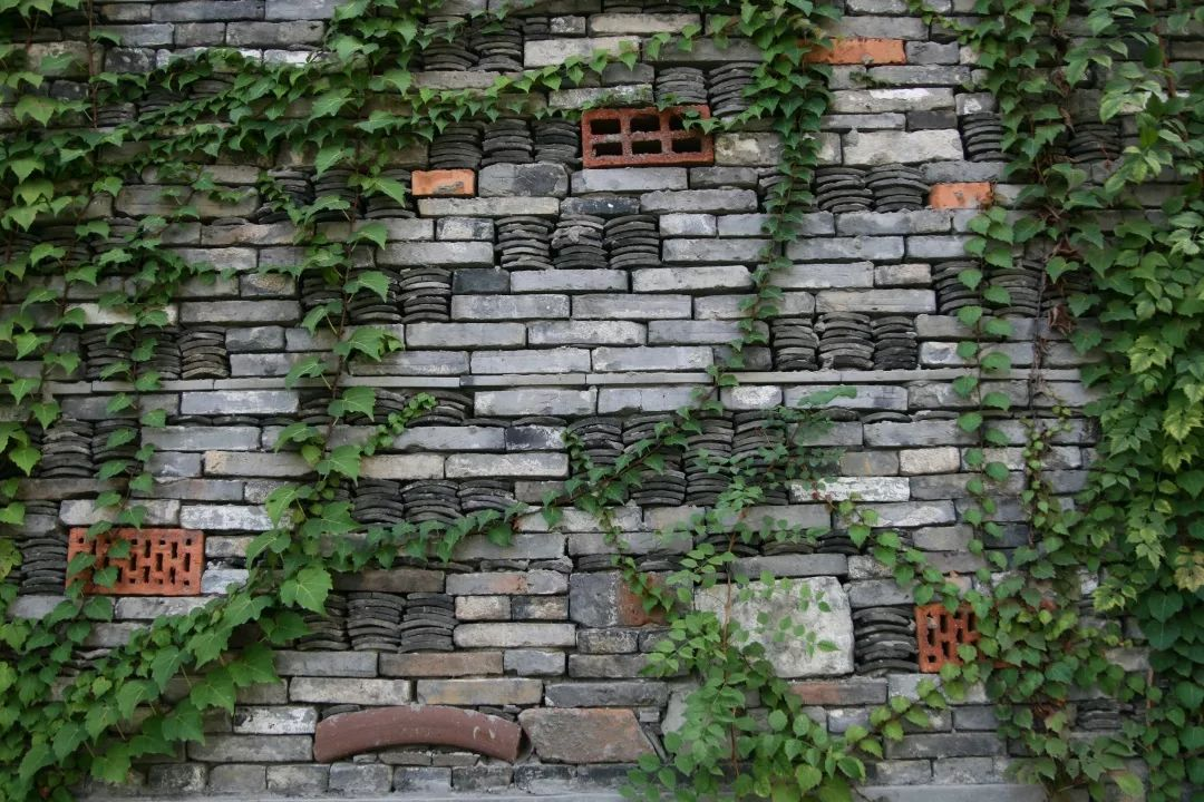 利用场地内旧民宅弃砖加再生砖作隔声景观围墙