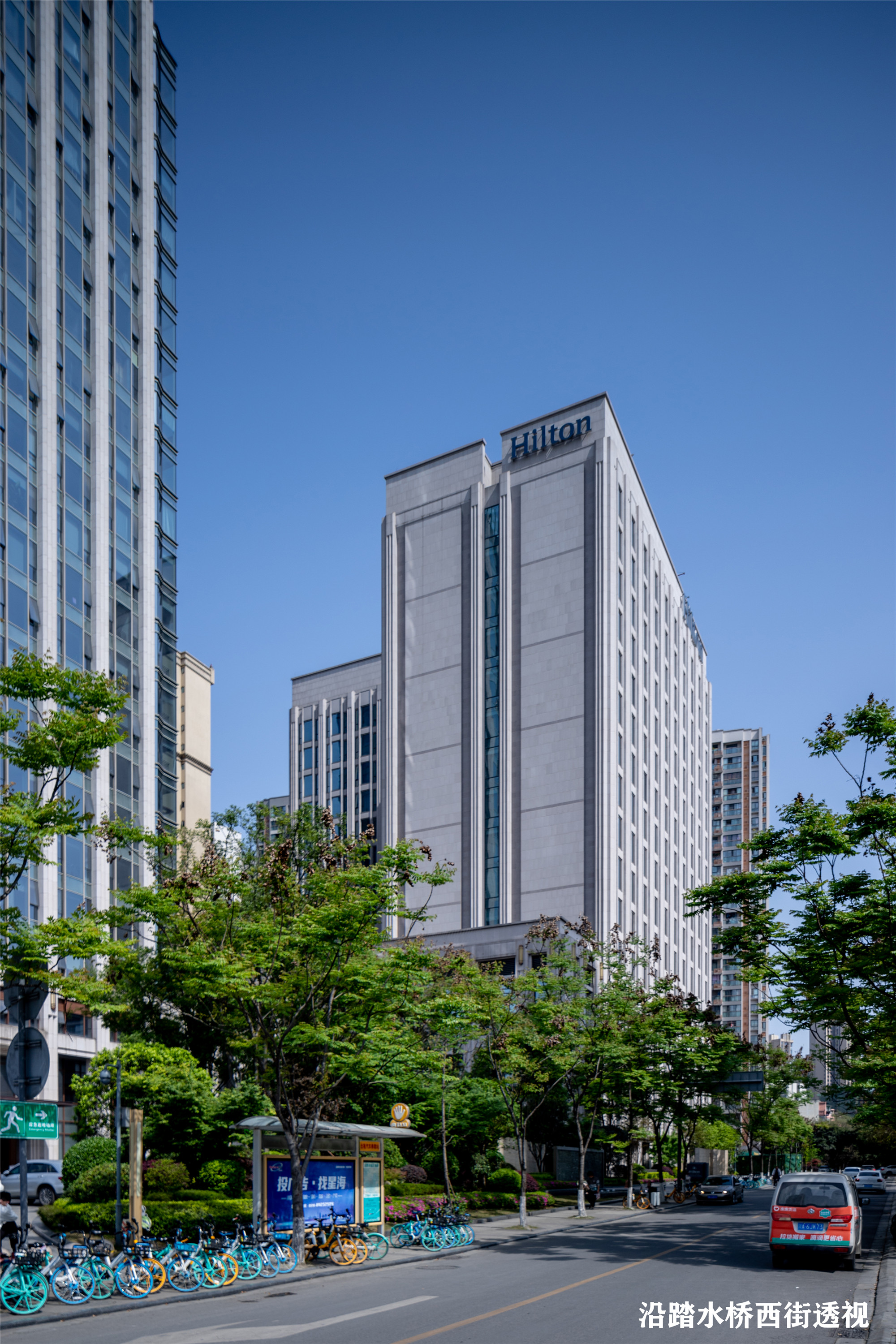 项目位于成都市成华区府青路片区,西侧紧临府青路二段,南侧为踏水桥西街,东临府青路东街,北临项目场地内部。项目采用艺术化、人性化、绿建化、智能化的设计理念,通过集约化的场地和平面设计策略,将用地利用到极致,营造高品质的酒店室内外空间。