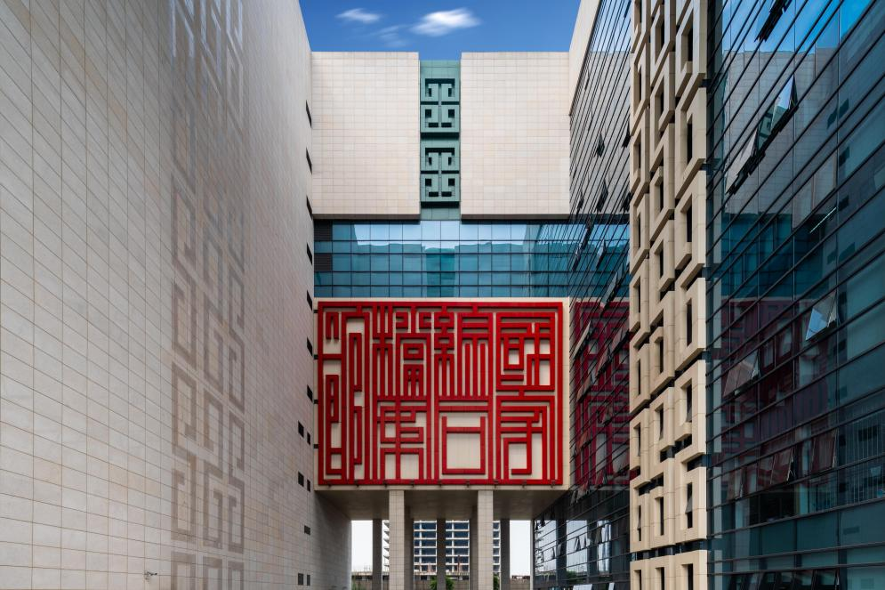 建筑通过“鼎”“印”“铭刻金文”等华夏文明元素,