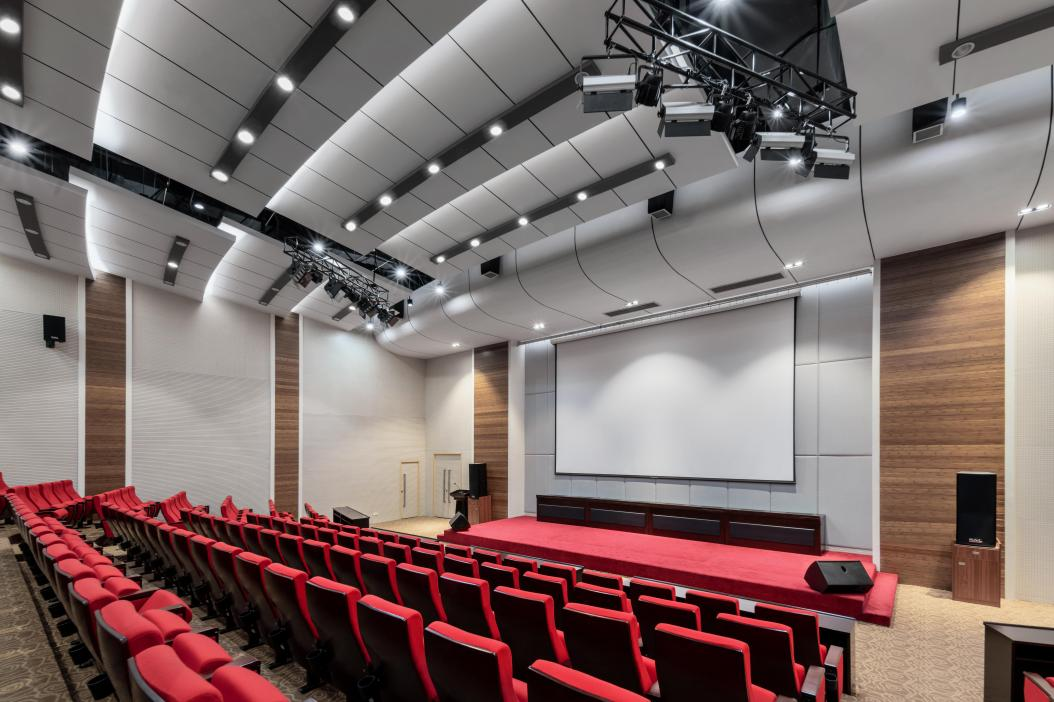建筑四层观众厅,采用大跨度型钢转换梁转换体系实现建筑的大空间功能。
