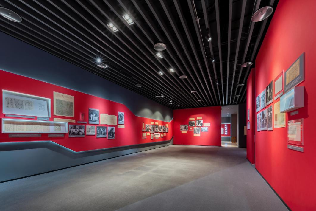 在展厅布局中创新采用了高空吊装钢构桁架结构,