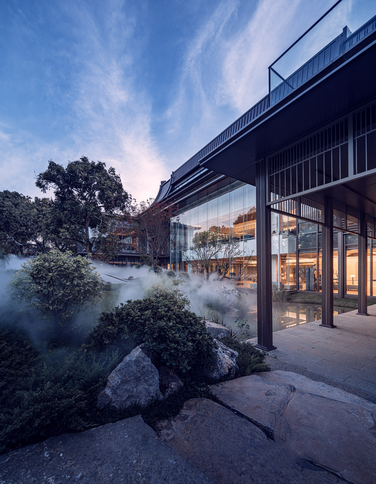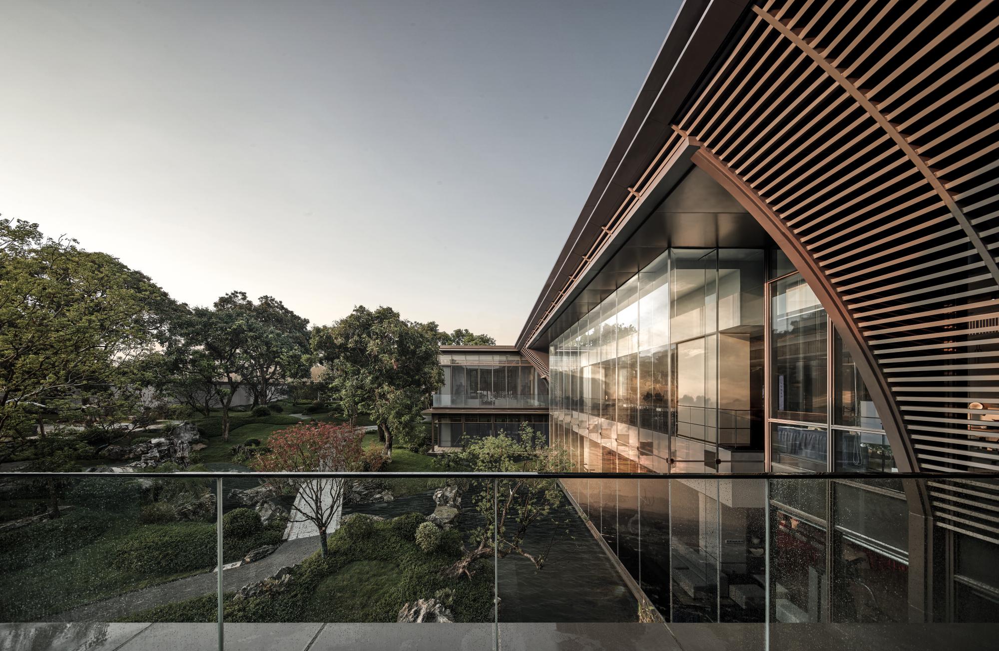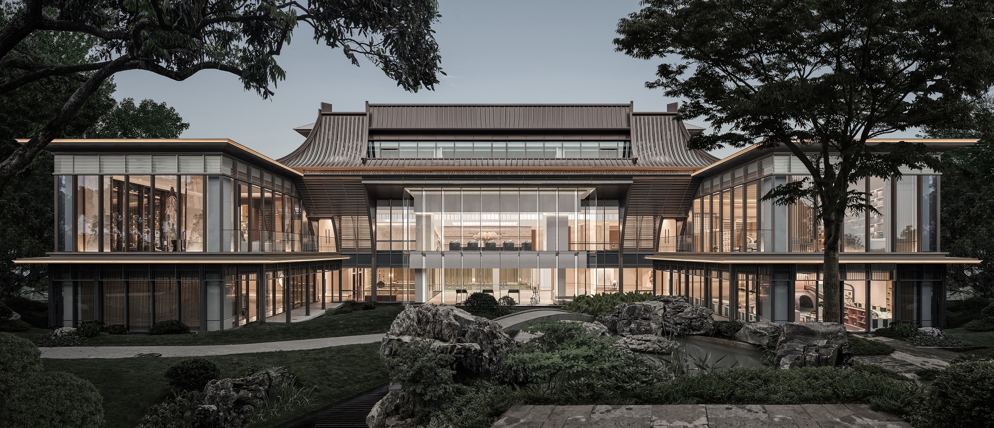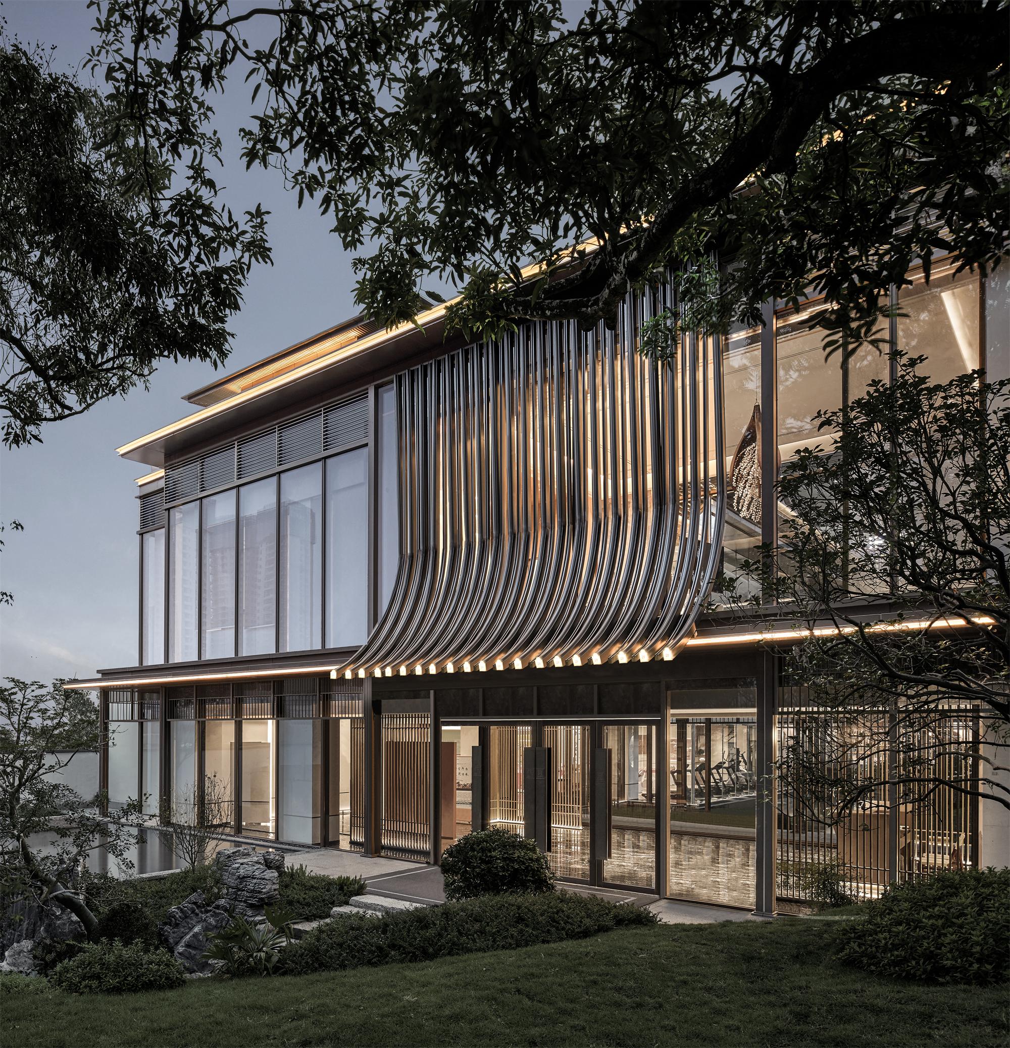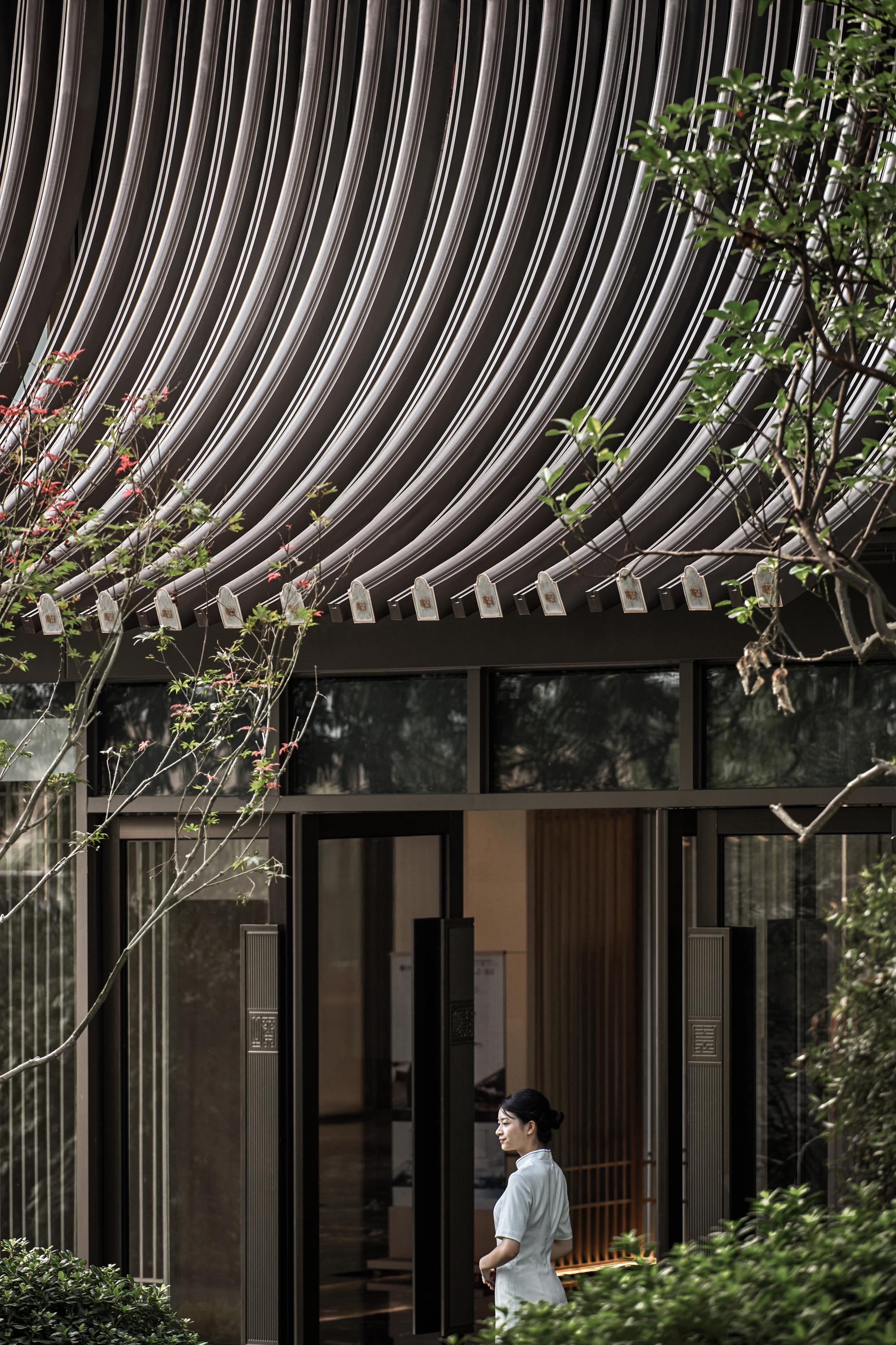 它既是一个庄重的售楼部,用恢弘大气的姿态向人们展示社区的形象;又以开放包容怀抱姿态拥抱这片原生态自然,创造“不出城廓而获山水之怡,身居闹市而得林泉之趣”的感官感受。建筑设计从宋式书院美学提取灵感,加以现代转译,凝结成当代诗篇。