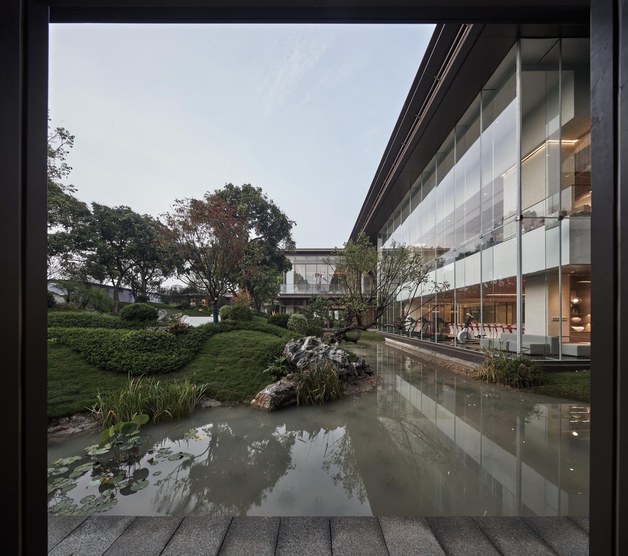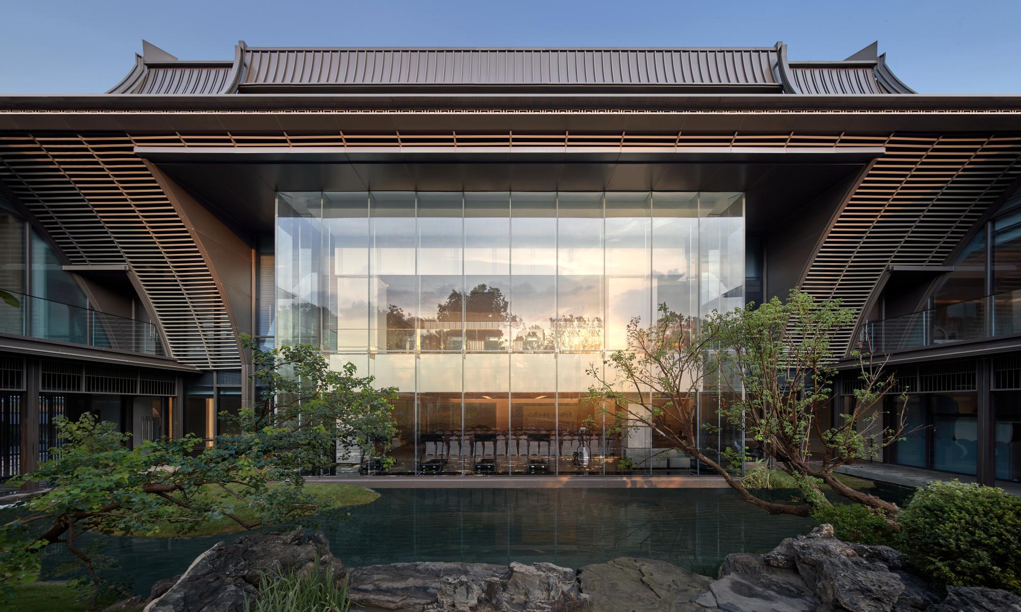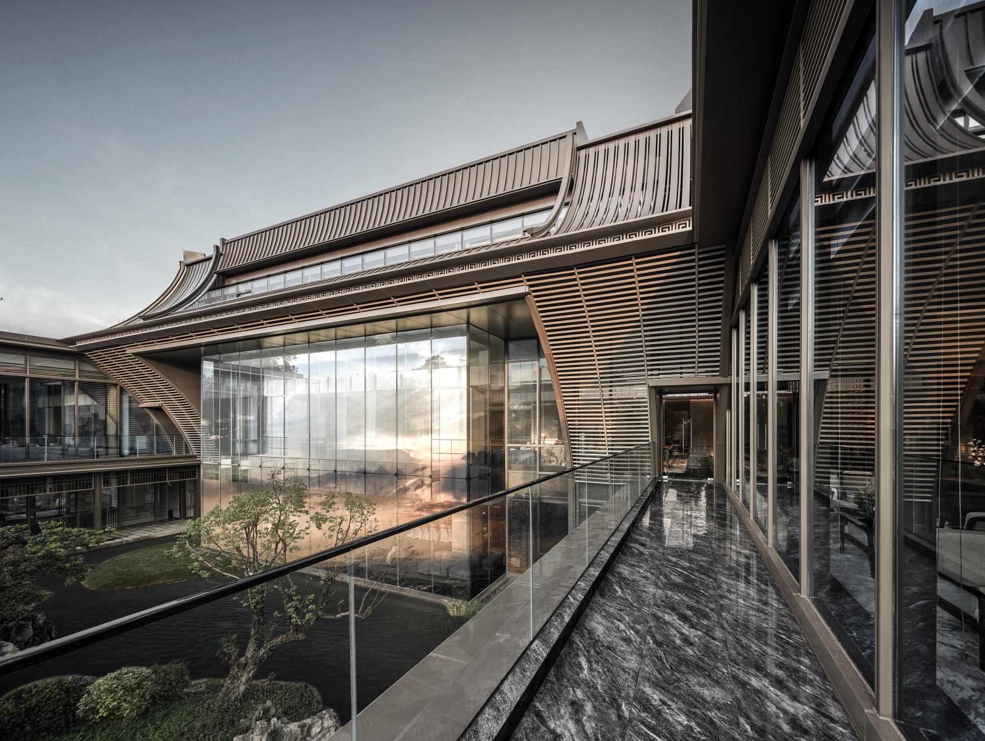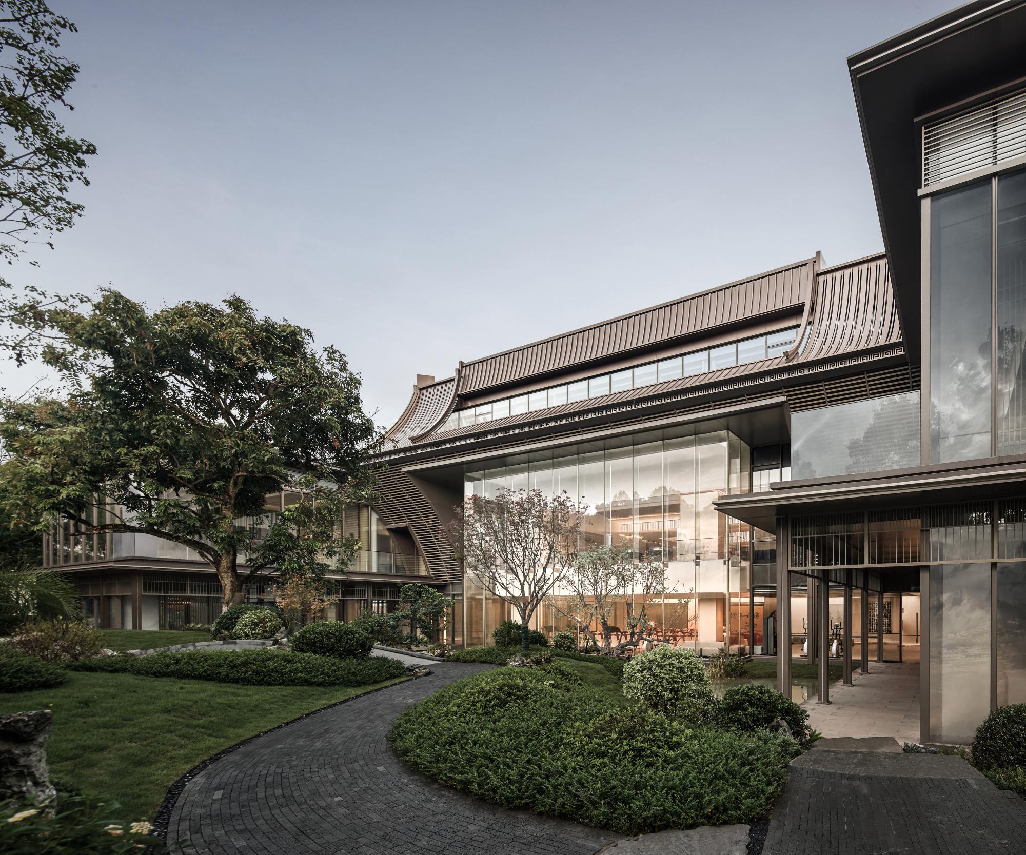它既是一个庄重的售楼部,用恢弘大气的姿态向人们展示社区的形象;又以开放包容怀抱姿态拥抱这片原生态自然,创造“不出城廓而获山水之怡,身居闹市而得林泉之趣”的感官感受。建筑设计从宋式书院美学提取灵感,加以现代转译,凝结成当代诗篇。