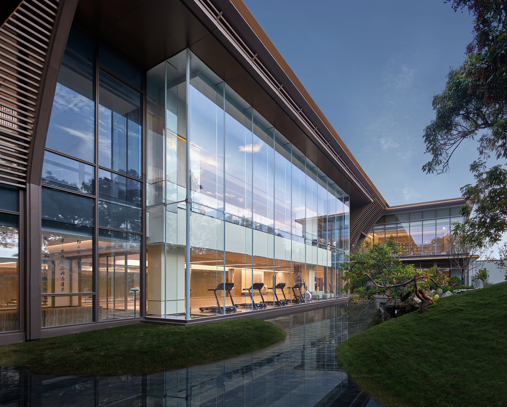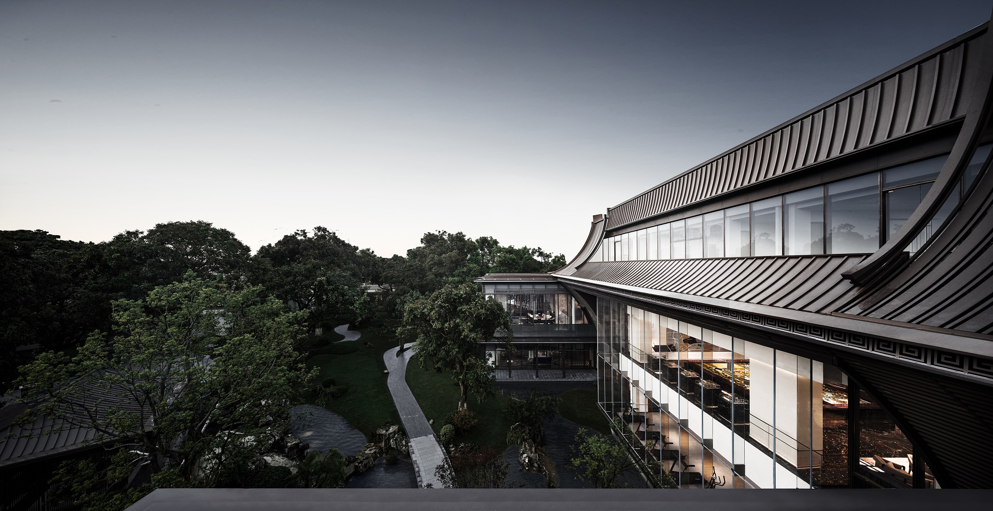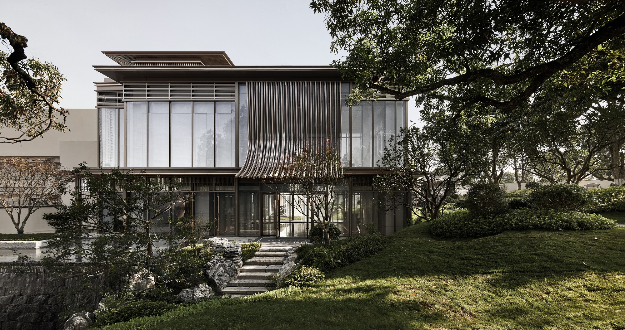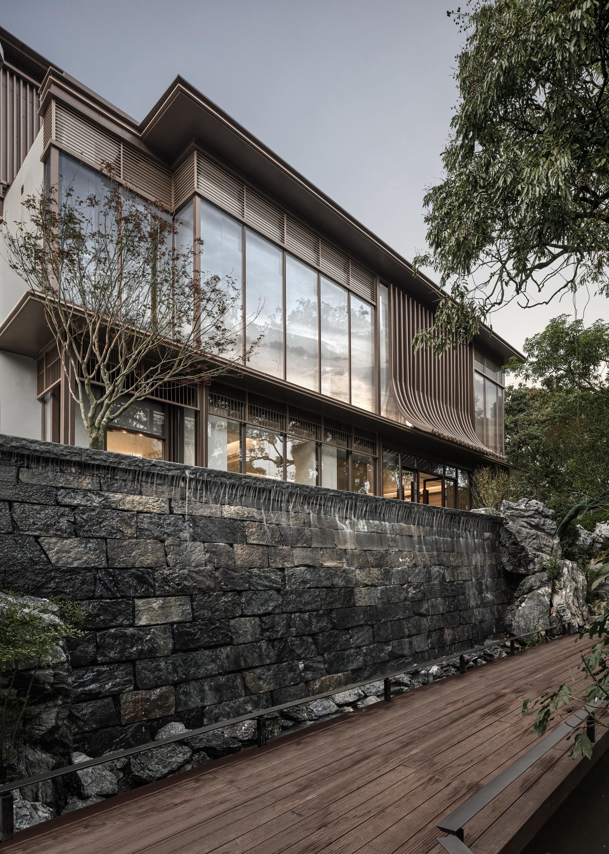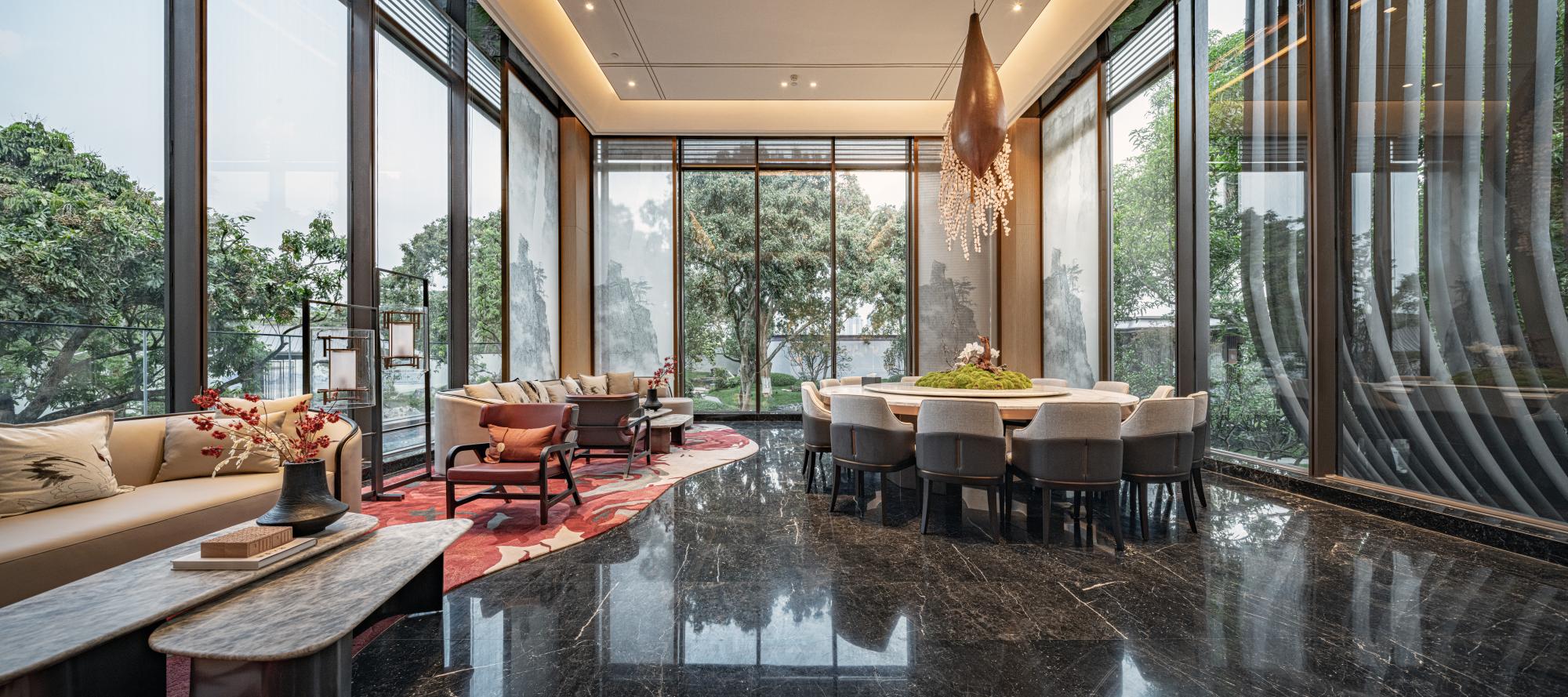 它既是一个庄重的售楼部,用恢弘大气的姿态向人们展示社区的形象;又以开放包容怀抱姿态拥抱这片原生态自然,创造“不出城廓而获山水之怡,身居闹市而得林泉之趣”的感官感受。建筑设计从宋式书院美学提取灵感,加以现代转译,凝结成当代诗篇。