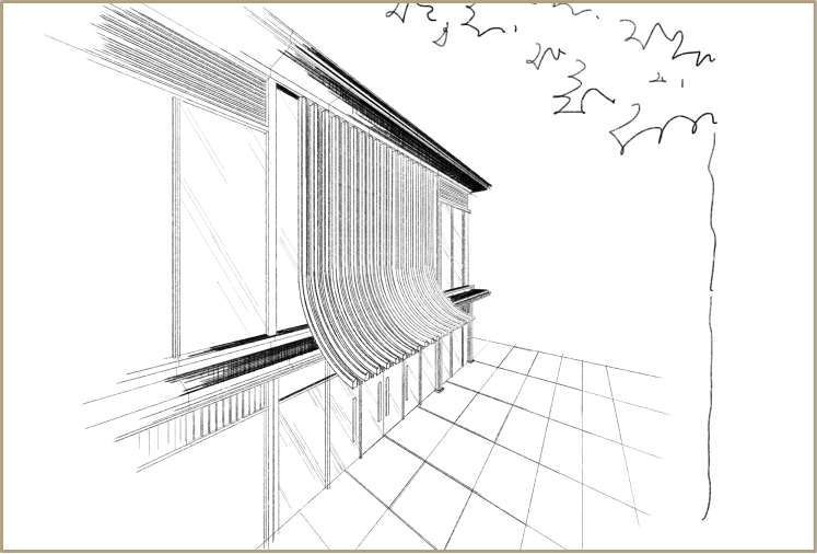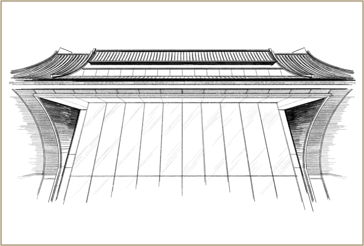 售楼处立面构成兼顾横向与纵向的比例关系,屋檐曲度成为整个立面的点睛之笔,简约而不简单,尽显大气典雅之感。