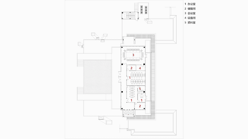 建筑共分为三层。考虑到观景效果,把沙盘区、洽谈、家宴、书吧等主要销售区设置于负一层,负二层则作为接待、健身区、儿童游玩区等泛会所空间。