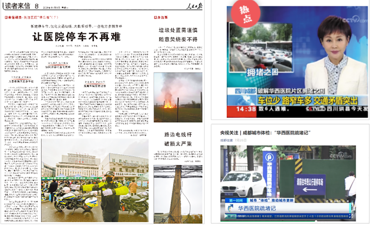 封面新闻四川频道数据解读项目完成后华西医院片区拥堵指数下降了6成,11月9日的《人民日报》8版发表报道《让医院停车不再难》,该项目解决医院停车难题的做法受到关注。